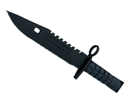 This is the M-9 bayonet. Originally intended to be mounted on a rifle, it is also well suited to close-quarters combat. It has individual parts spray-painted solid colors in a night ops color scheme.