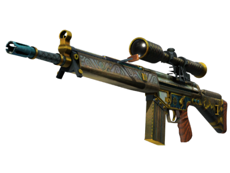 The pricy G3SG1 lowers movement speed considerably but compensates with a higher rate of fire than other sniper rifles. It has been custom painted with a nautical theme and decorative brass metal work.