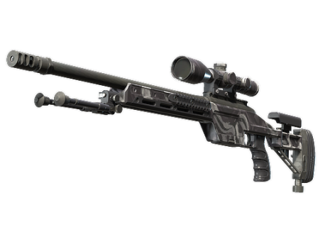 The SSG08 bolt-action is a low-damage but very cost-effective sniper rifle, making it a smart choice for early-round long-range marksmanship. A grayscale graphic pattern has been applied.