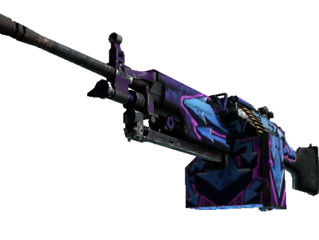 A strong open-area LMG, the M249 is the perfect choice for players willing to trade a slow fire rate for increased accuracy and a high ammo capacity. It has been tagged with blue and pink arrows pointing in every direction.
