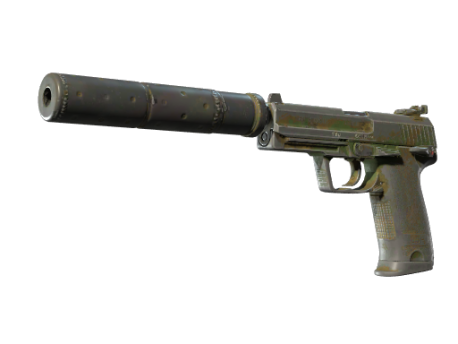 A fan favorite from Counter-Strike Source, the Silenced USP Pistol has a detachable silencer that gives shots less recoil while suppressing attention-getting noise. It has been spray-painted using leaves as stencils.