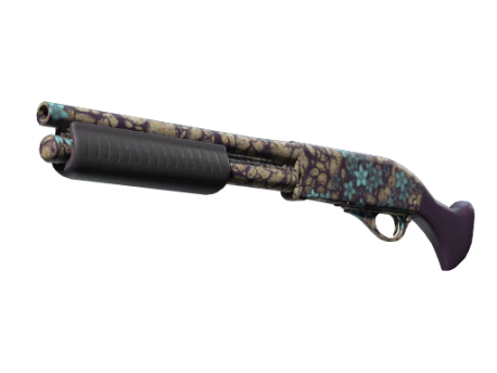 The classic Sawed-Off deals very heavy close-range damage, but with its low accuracy, high spread and slow rate of fire, you'd better kill what you hit. It has been spray-painted with vibrant flowers atop a dry, cracked base.