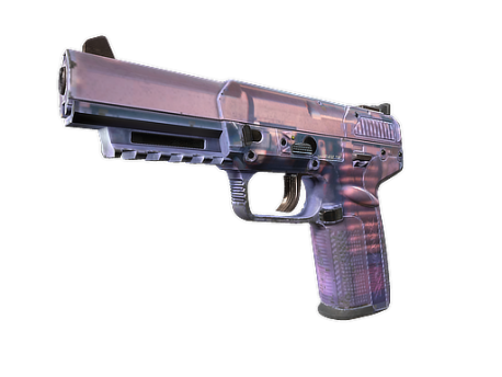 Highly accurate and armor-piercing, the pricy Five-Seven is a slow-loader that compensates with a generous 20-round magazine and forgiving recoil. This custom paint job makes the weapon look like it is made of a transparent purple polymer.