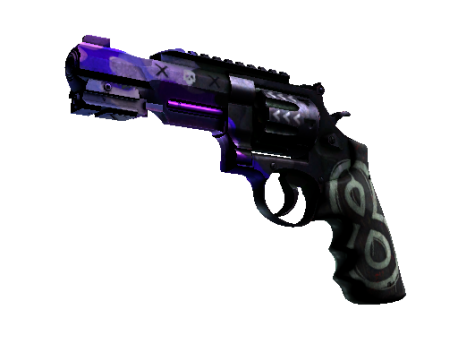 The R8 Revolver delivers a highly accurate and powerful round at the expense of a lengthy trigger-pull. Firing rapidly by fanning the hammer may be the best option when point-blank stopping power is required. It has been custom painted with a purple barrel and a number 8 on the grip.