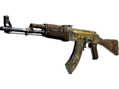 Powerful and reliable, the AK-47 is one of the most popular assault rifles in the world. It is most deadly in short, controlled bursts of fire. The wood on the stock and handguard feature beautiful carvings, often stealing attention from the custom painted jaguar on the side.