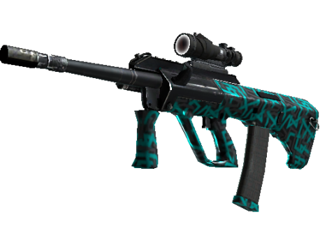 Powerful and accurate, the AUG scoped assault rifle compensates for its long reload times with low spread and a high rate of fire. It has been custom painted with a two tone knotwork pattern.
