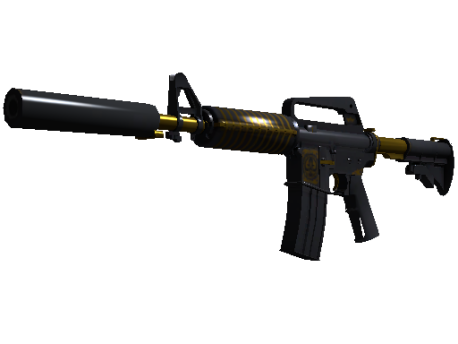 With a smaller magazine than its unmuffled counterpart, the silenced M4A1 provides quieter shots with less recoil and better accuracy. It has brass inlays with a renaissance armor theme.