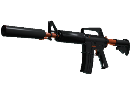 With a smaller magazine than its unmuffled counterpart, the silenced M4A1 provides quieter shots with less recoil and better accuracy. It has individual parts spray-painted black and tangerine orange.