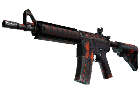 More accurate but less damaging than its AK-47 counterpart, the M4A4 is the full-auto assault rifle of choice for CTs. It has been spray-painted with radiological warning hazard patterns.