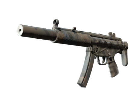 Often imitated but never equaled, the iconic MP5 is perhaps the most versatile and popular SMG in the world. This SD variant features an integrated silencer, making an already formidable weapon whisper-quiet. Black streaks have been spray painted over a dark base.
