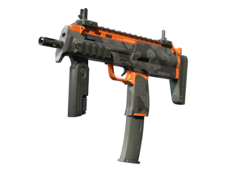 Versatile but expensive, the German-made MP7 SMG is the perfect choice for high-impact close-range combat. It has been custom painted with urban camo and orange accents.