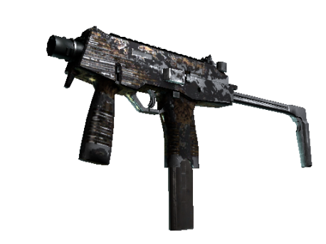 Manufactured in Switzerland, the cutting-edge MP9 SMG is an ergonomic polymer weapon favored by private security firms. A gold damask pattern has been applied. Fight of fancy