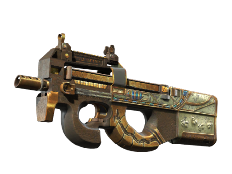 Easily recognizable for its unique bullpup design, the P90 is a great weapon to shoot on the move due to its high-capacity magazine and low recoil. It has been custom painted with scarabs and Egyptian inspired designs.
