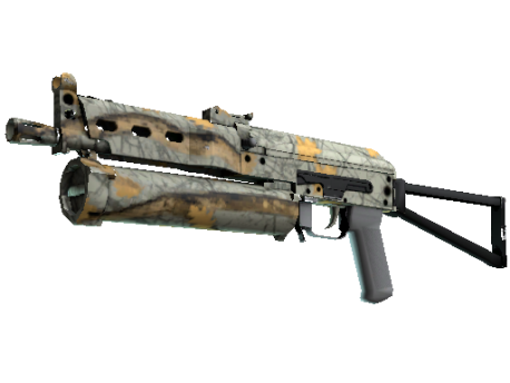 The Bizon SMG is low-damage, but offers a uniquely designed high-capacity drum magazine that reloads quickly. It has been painted using a photographic hunting camo hydrographic.