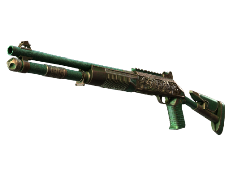 The XM1014 is a powerful fully automatic shotgun that justifies its heftier price tag with the ability to paint a room with lead fast. It has been custom painted with a jade green base and two guardian lions watching either direction. A third lion has been painted beneath the rear sight.