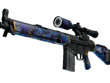 The pricy G3SG1 lowers movement speed considerably but compensates with a higher rate of fire than other sniper rifles. It has been decorated with a hydrographic of watch mechanisms in psychedelic colors and accented with heat transfer decals.
