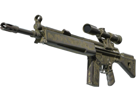 The pricy G3SG1 lowers movement speed considerably but compensates with a higher rate of fire than other sniper rifles. It has been spray-painted using mesh fencing and cardboard cutouts as stencils.