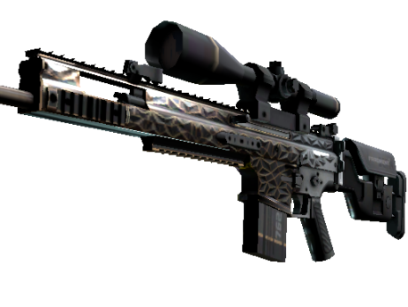 The SCAR-20 is a semi-automatic sniper rifle that trades a high rate of fire and powerful long-distance damage for sluggish movement speed and big price tag. The gunmetal-colored custom paint job creates the illusion that the weapon's geometry has changed.