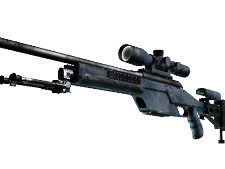 The SSG08 bolt-action is a low-damage but very cost-effective sniper rifle, making it a smart choice for early-round long-range marksmanship. It has been spray-painted using cardboard cutouts, fine mesh, and palm leaves as stencils.