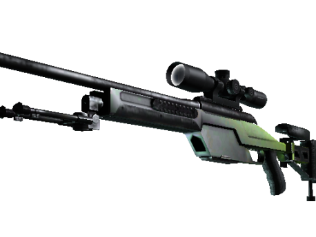 The SSG08 bolt-action is a low-damage but very cost-effective sniper rifle, making it a smart choice for early-round long-range marksmanship. It has been painted by airbrushing transparent paints that fade together over a chrome base coat.