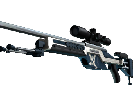 The SSG08 bolt-action is a low-damage but very cost-effective sniper rifle, making it a smart choice for early-round long-range marksmanship. It has been hand painted with blue and white checkerboard patterns.