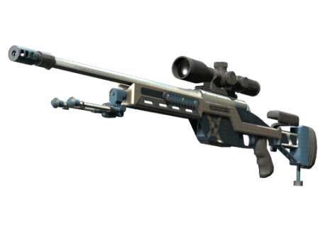 The SSG08 bolt-action is a low-damage but very cost-effective sniper rifle, making it a smart choice for early-round long-range marksmanship. It has been hand painted with blue and white checkerboard patterns.