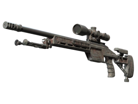 The SSG08 bolt-action is a low-damage but very cost-effective sniper rifle, making it a smart choice for early-round long-range marksmanship. It has been spray-painted with a rust colored zebra stripe pattern.