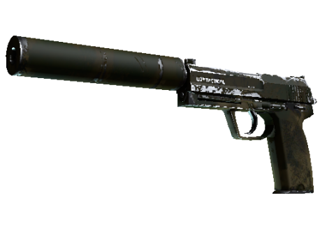 A fan favorite from Counter-Strike Source, the Silenced USP Pistol has a detachable silencer that gives shots less recoil while suppressing attention-getting noise. It has been spray-painted using leaves as stencils.