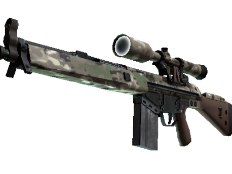 The pricy G3SG1 lowers movement speed considerably but compensates with a higher rate of fire than other sniper rifles. It has been painted using a VariCamo patterned hydrographic.