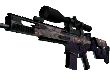 The SCAR-20 is a semi-automatic sniper rifle that trades a high rate of fire and powerful long-distance damage for sluggish movement speed and big price tag. A purple-colored pattern of crests, scrawls, and text from the Magna Carta has been applied.