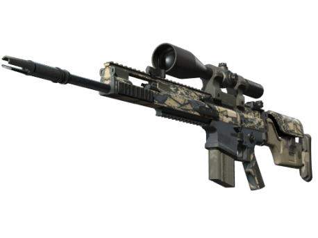 The SCAR-20 is a semi-automatic sniper rifle that trades a high rate of fire and powerful long-distance damage for sluggish movement speed and big price tag. It has been painted with a tan colored cracked tile hydrographic.