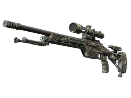 The SSG08 bolt-action is a low-damage but very cost-effective sniper rifle, making it a smart choice for early-round long-range marksmanship. A forest-colored tiger camo pattern has been applied.