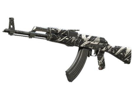 Powerful and reliable, the AK-47 is one of the most popular assault rifles in the world. It is most deadly in short, controlled bursts of fire. A grayscale pattern featuring aggressive "zed" designs has been applied over a carbon fiber base.