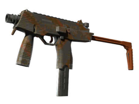 Manufactured in Switzerland, the cutting-edge MP9 SMG is an ergonomic polymer weapon favored by private security firms. A hydrographic pattern of orange and brown streaks has been applied.