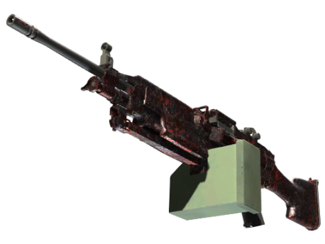 Пулемет M249 хорош на открытых пространствах и идеально подходит игрокам, готовым мириться с медленным темпом стрельбы ради вместительного магазина и повышенной точности. На нём есть детали с медным покрытием, скрытые за рисунком в виде магмы и красным налётом, полученным с помощью хлорида натрия и высоких температур. Непокрытые области впоследствии были затемнены окислением сернистым калием.