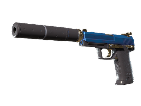 Пистолет USP, любимец игроков в Counter-Strike: Source, имеет отсоединяемый глушитель, который уменьшает отдачу, одновременно поглощая привлекающий внимание шум. It has been custom painted with a solid blue slide and finished with gold accents.