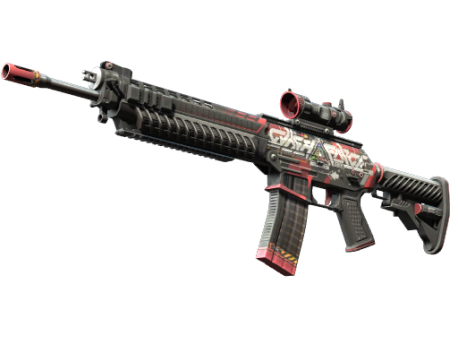 Эксклюзивный для террористов SG553 — хорошая альтернатива АК-47 с прицелом, помогающим в стрельбе на дальних дистанциях. Логотип корпорации CYBERFORCE нанесён поверх красно-чёрной основы.