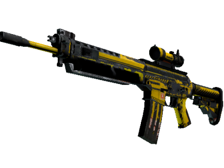 Эксклюзивный для террористов SG553 — хорошая альтернатива АК-47 с прицелом, помогающим в стрельбе на дальних дистанциях. На жёлтую основу нанесены оранжевые элементы в виде дорожных конусов.