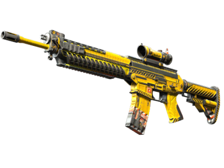 Эксклюзивный для террористов SG553 — хорошая альтернатива АК-47 с прицелом, помогающим в стрельбе на дальних дистанциях. На жёлтую основу нанесены оранжевые элементы в виде дорожных конусов.