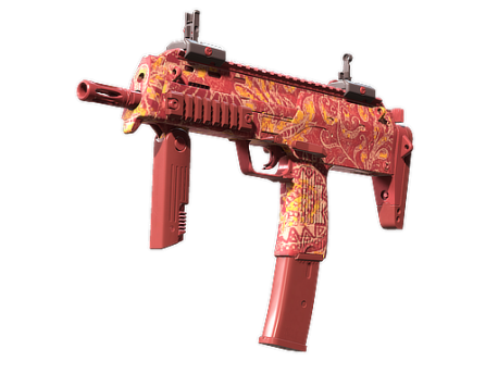 Versatile but expensive, the German-made MP7 SMG is the perfect choice for high-impact close-range combat. A red and orange paisley pattern has been applied.