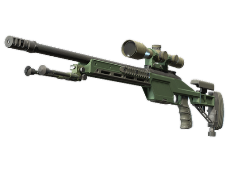Снайперская винтовка SSG08 со скользящим затвором не наносит много повреждений, однако хорошее соотношение цены и качества делает ее отличным приобретением в первых раундах для перестрелок на дальних дистанциях. It has been painted using different shades of green.