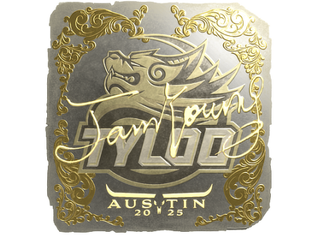 Эта золотая наклейка подписана профессиональным игроком по имени И Ян из команды Tyloo на BLAST.tv Austin Major 2025.
