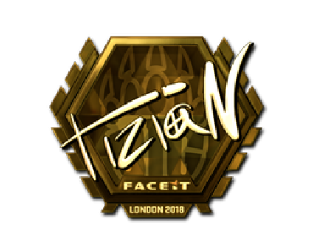 Эта золотая наклейка подписана профессиональным игроком по имени Тициан Фельдбуш из команды BIG на FACEIT London 2018.