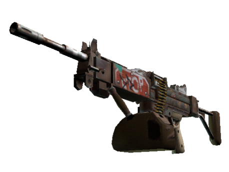 The Negev is a beast that can keep the enemy at bay with its pin-point supressive fire, provided you have the luxury of time to gain control over it. A stop sign has been custom painted near the assault grip over a mostly brown base.
