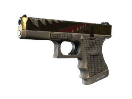 The Glock 18 is a serviceable first-round pistol that works best against unarmored opponents and is capable of firing three-round bursts. A custom paint job reminiscent of a previous era's war planes has been applied.
