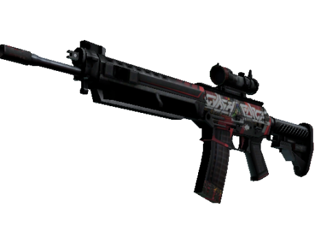 The terrorist-exclusive SG553 is a premium scoped alternative to the AK47 for effective long-range engagement. The CYBERFORCE INC logo has been custom painted over a red and black base.