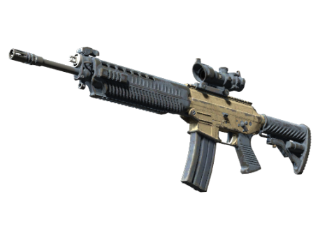 The terrorist-exclusive SG553 is a premium scoped alternative to the AK47 for effective long-range engagement. It has individual parts spray-painted solid colors in a tornado color scheme.