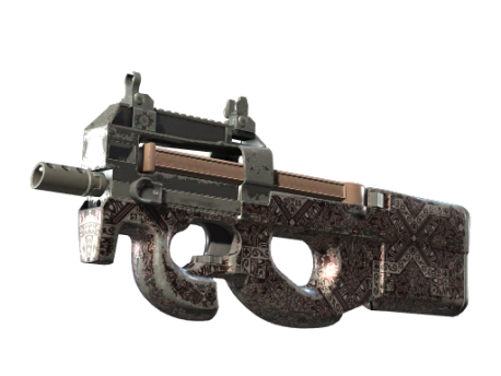 Easily recognizable for its unique bullpup design, the P90 is a great weapon to shoot on the move due to its high-capacity magazine and low recoil. An intricate maroon and gray Italian inspired pattern has been applied.